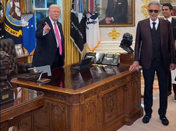 WH comms adviser Margo Martin posted on social media the president is meeting with opera singer Andrea Boccelli. Some of his music has been playing, too.